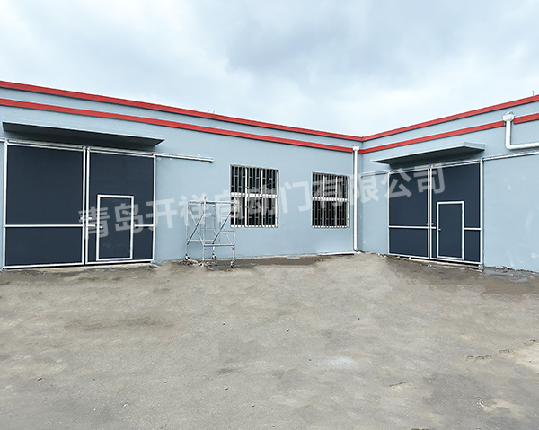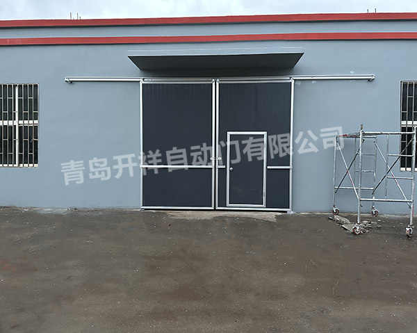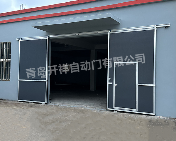 河南经济款大墙灰颜色的铝合金外框工业推拉门安装完成